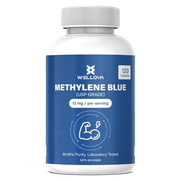 WELLOVA - Methylene Blue 120 Capsules - 12mg/capsule - 99.9% Ultra-Pure Pharmaceutical Grade - Brain, Mitochondria & Cellular Support - Health Canada Approved - Third Party Tested - Vegan/Non-GMO - Made in Canada