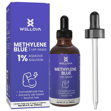 WELLOVA - 1% High Concentrate Methylene Blue 120ml Solution - Ultra High Purity - USP Pharmaceutical Grade - Free of Formaldehyde - Glass Dropper - Made in Canada