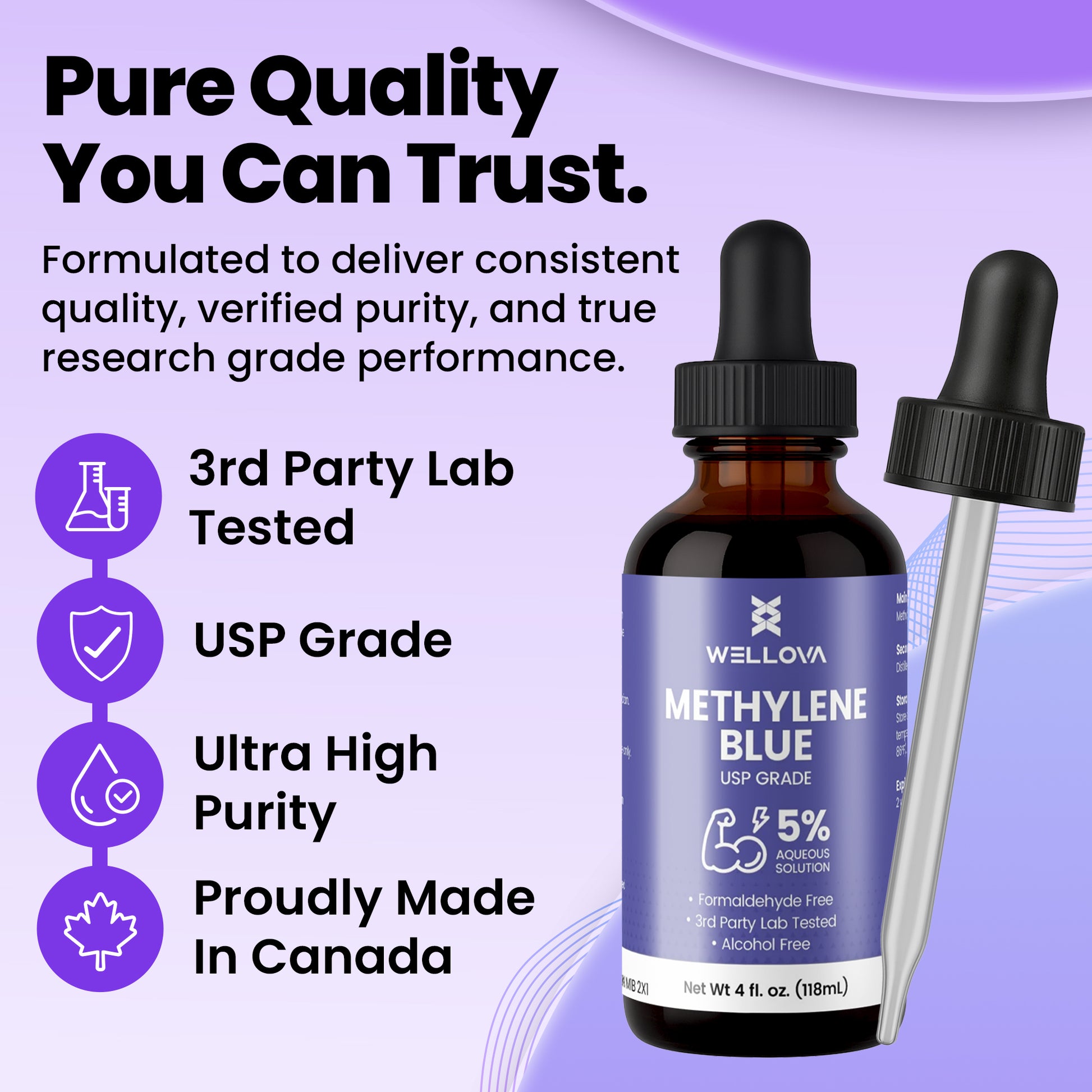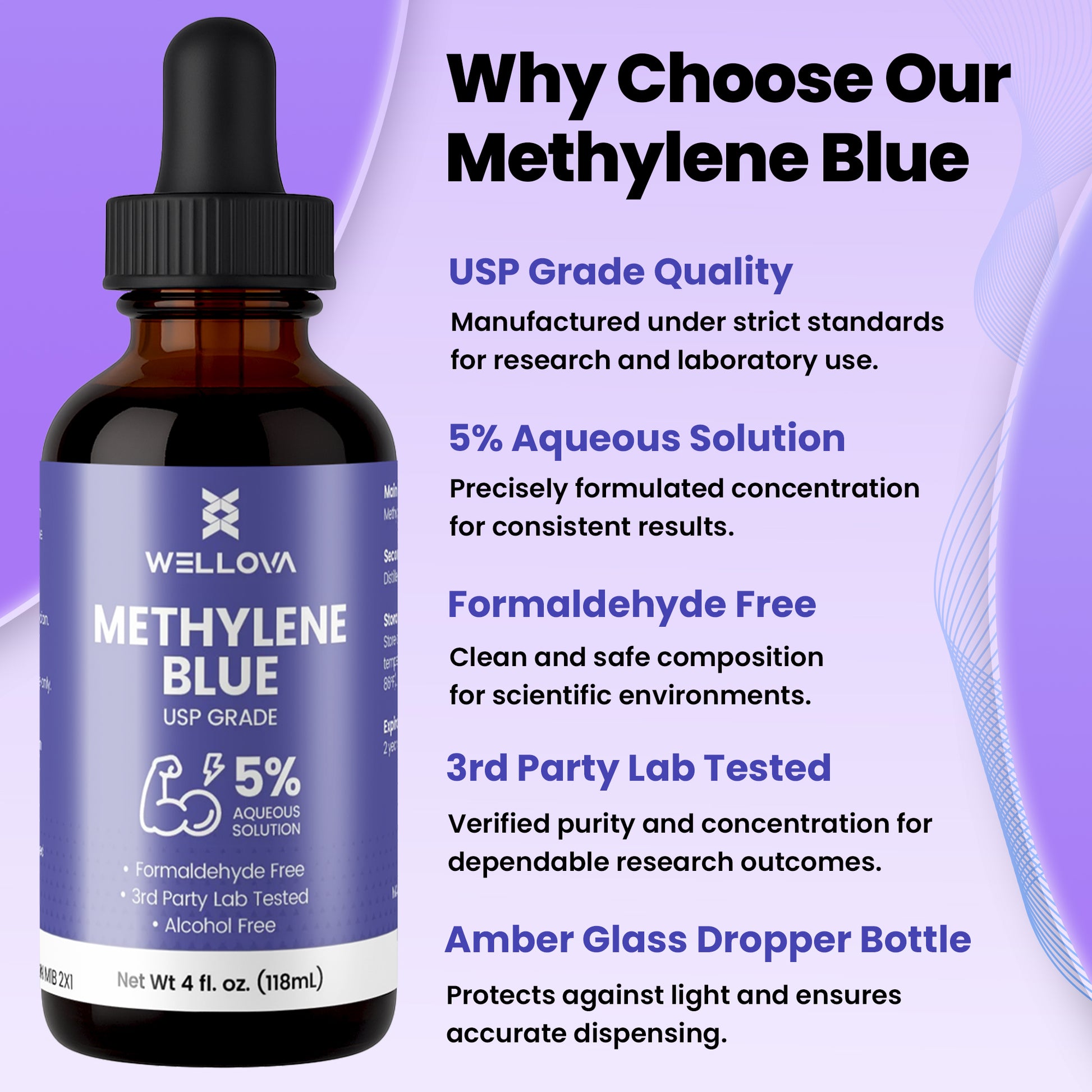 Wellova Methylene Blue 5% Solution | High-Purity Laboratory Grade | Large 120 mL UV-Protective Bottle