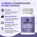 Wellova’s Sea Moss, Black Seed Extract, Ashwagandha, & Burdock Root formula is a premium 4-in-1 herbal blend crafted to support natural wellness. Each capsule combines nutrient-rich sea moss with the traditional strength of black seed, the adaptogenic benefits of ashwagandha, and the cleansing properties of burdock root. Bladderwrack is included to complement the mineral profile of sea moss, creating a balanced and complete formula.